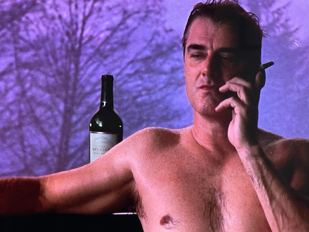 #6 – Carrie is about to fall asleep (at home, alone, minus Amazon rain forest noises and plus a sleep mask) when her phone rings. It’s Big, wanting to phone sex her, and she complies, though she will, the very next day, blame him for everything. At brunch the next morning she declares she had “accidental phone sex with Big” but then changes her story. HE had phone sex and she she was trying to figure out a polite way to get out of it. THEN she admits they have phone sex occasionally since he’s moved to Napa. If that is the case, why not just tell him she is seeing someone before he starts jerking off? Also, I am assuming there was a phone sex pause for a while after he read her book since he was so reluctant to real life sex her when she was in SF.