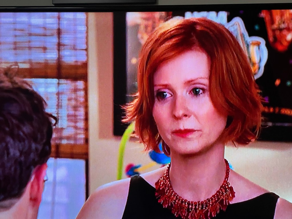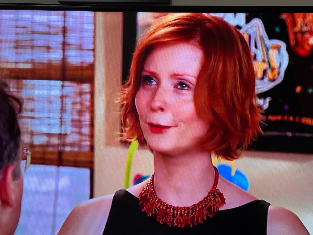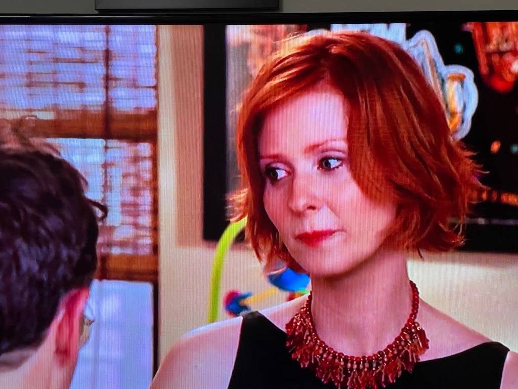 #11 – When the play is over and Samantha notices Berger’s absence, Carrie makes an excuse for him not being there (“he’s coming down with something”) and in the final voiceover says she is acting the part of the woman in a great relationship whose boyfriend is coming down with a cold.