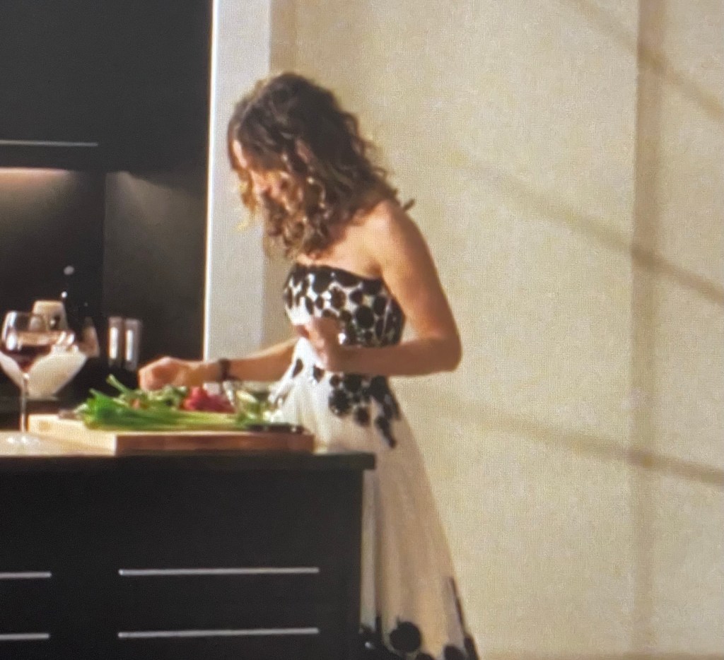 #2 – Later that night, Carrie and The Russian are prepping for a dinner party for all of her friends. He is cooking, but I see people working in the background. Like you need to hire a staff for a ten-person dinner party? Whatever.