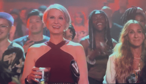 Cut to Carrie and Charlotte in their Uber. Charlotte thinks she needs to bring up Miranda’s drinking. Charlotte thinks Miranda has a problem and Carrie says she needs a drink to have this conversation. Charlotte rats Miranda out about the Tito’s bottles in her backpack AND noticed that Miranda had TWO glasses of wine at dinner. Um…who cares?
